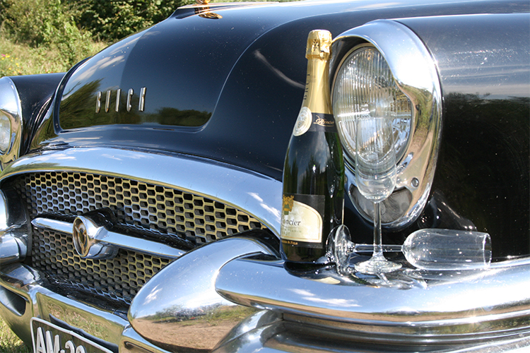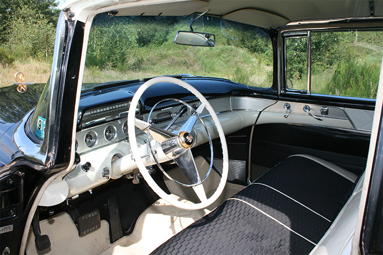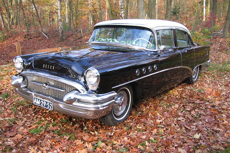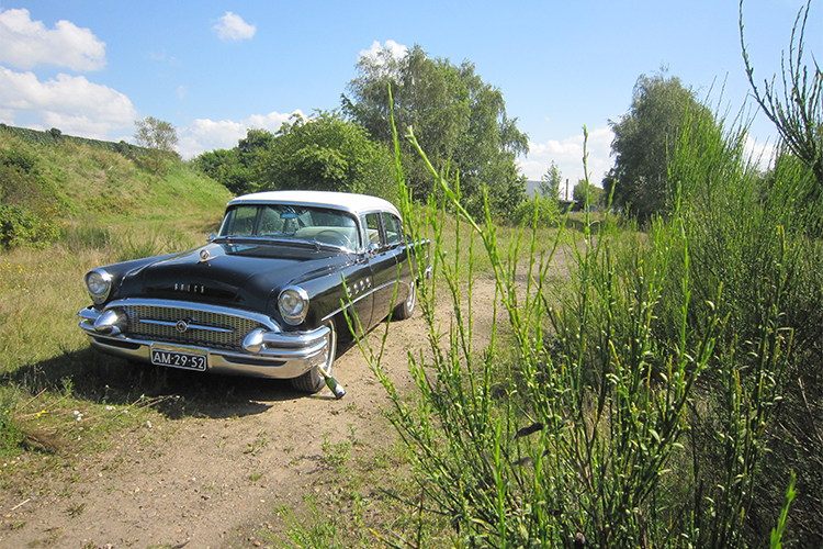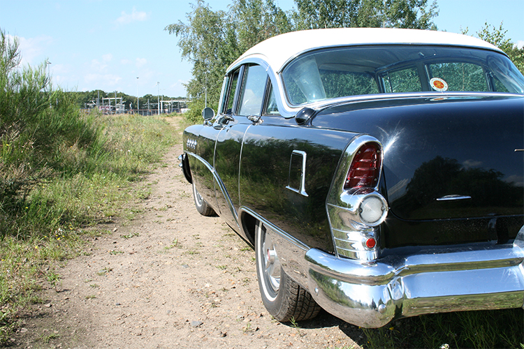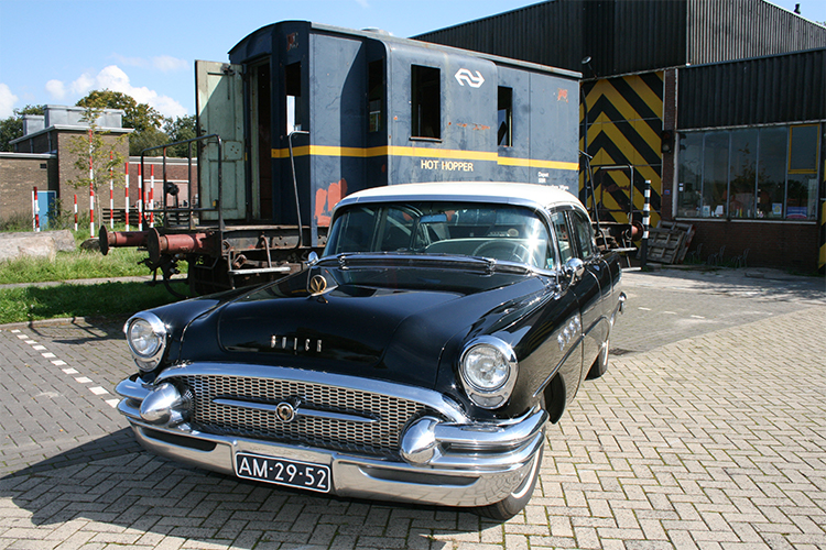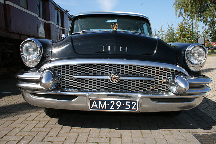 De indrukwekkende afmetingen en prachtige vormgeving maken deze unieke klassieker toch een zeer geliefde trouwauto. Deze Buick Roadmaster komt uit 1955. De periode dat in Europa alles nog in opbouw was en in de States alles nog groter als groot mocht zijn. De gebouwen moesten nog hoger, de wegen nog breder, en de automobielen nog groter. Met de enorme 8-cylinder en Dynaflow aandrijving hoefde de bouwers van deze Buick niet op een kilo of centimeter te kijken.