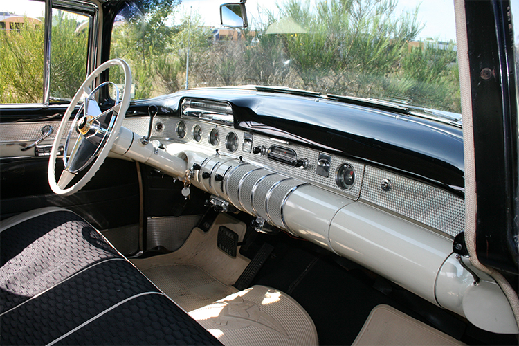 In 1955 is deze wagen afgeleverd door Davie Jones uit Lamesa (TX) en wij kochten deze wagen van de eerste (!) eigenaar, fam. Autry. Deze bruidswagen is nog in een volledig originele staat. De bekleding is nu 60 jaar oud, maar in nieuwstaat, net zo als de rest van deze bruidswagen, met zijn imposante dashboard, en fraaie grille. De enorme binnenruimte biedt ruim voldoende plaats, ook voor bruidskinderen.