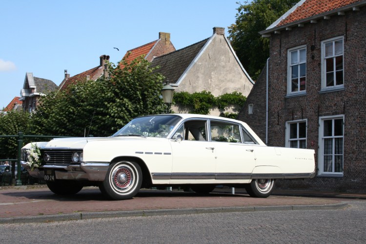 Deze Buick stamt uit 1964, de tijd van rock ’n roll en pettycoat. Een wagen waaraan letterlijk alles groot is, de auto zelf is groot (6 meter!) de motor is groot, de binnenruimte is groot, het glasoppervlak is groot, en natuurlijk….noodzakelijkerwijze is ook de tankinhoud groot.